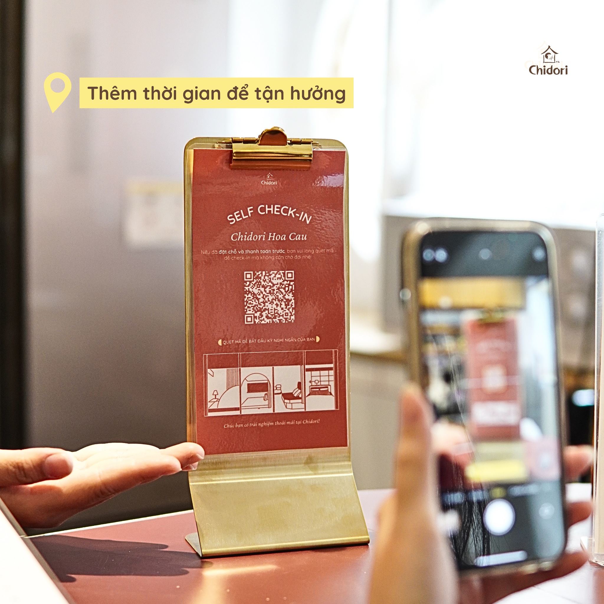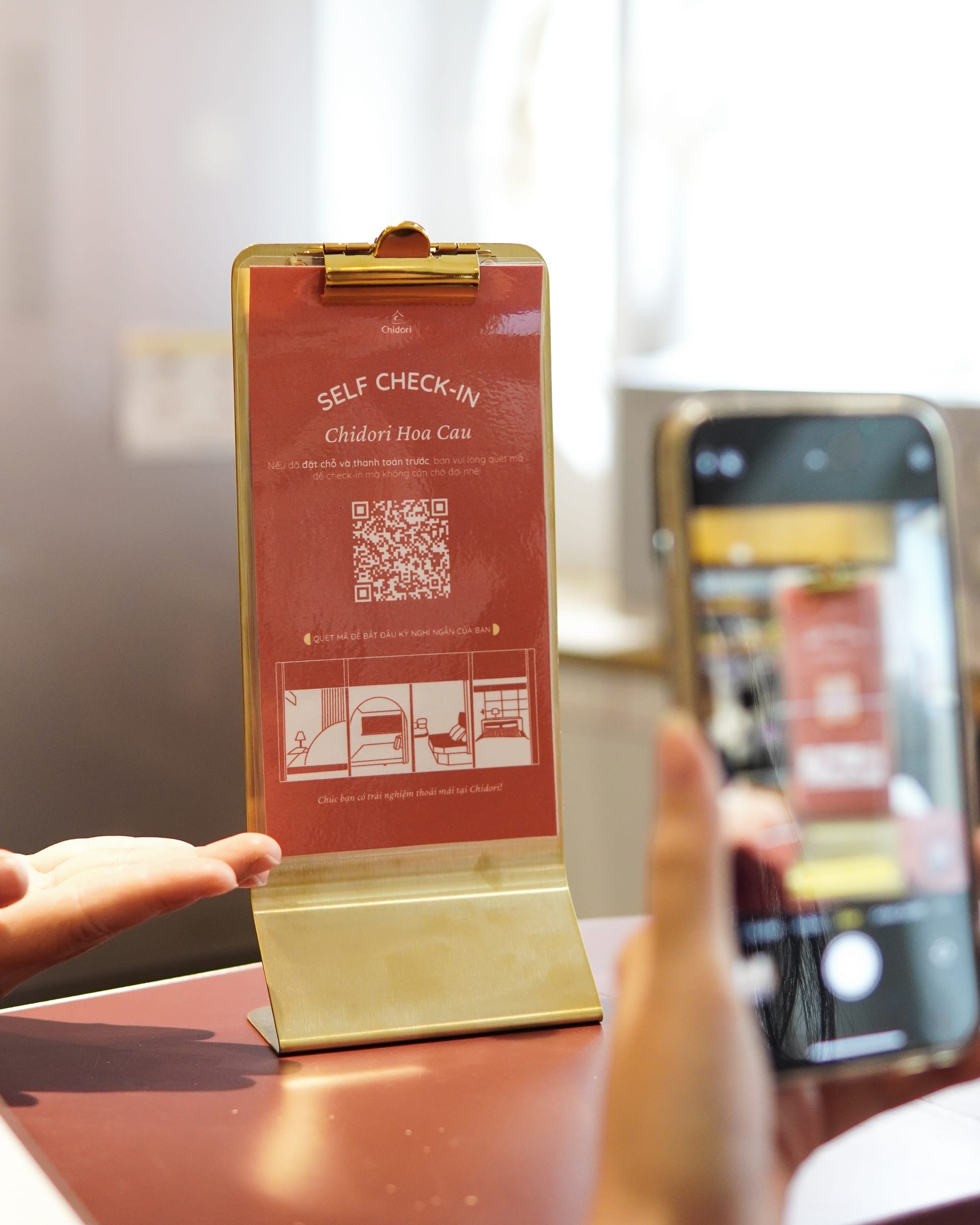 Thấu hiểu những khoảnh khắc nho nhỏ nhưng quan trọng ấy, bên cạnh cách thức check-in trực tiếp cùng nhân viên, Chidori mang đến thêm một lựa chọn mới “QR Self Check-in”, như một cách bắt đầu nhanh gọn và riêng tư hơn để bạn bước vào khoảng nghỉ của mình sớm hơn một chút, theo đúng nhịp mà bạn mong muốn.