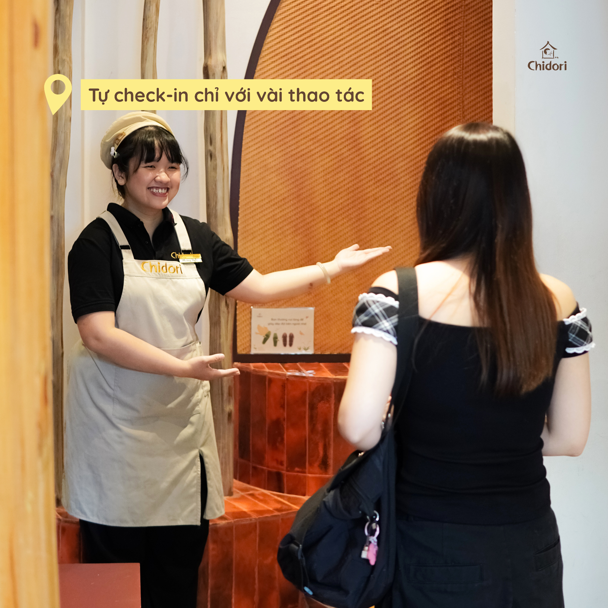 Bên cạnh hình thức check-in trực tiếp cùng nhân viên vốn đã rất quen thuộc trước đây, nay Chidori ra mắt trải nghiệm check-in mới - QR Self Check-in.